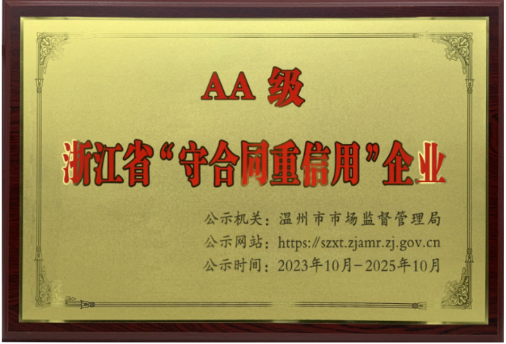 AA-level "Contract-abiding and Trustworthy" Enterprise in Zhejiang Province |
