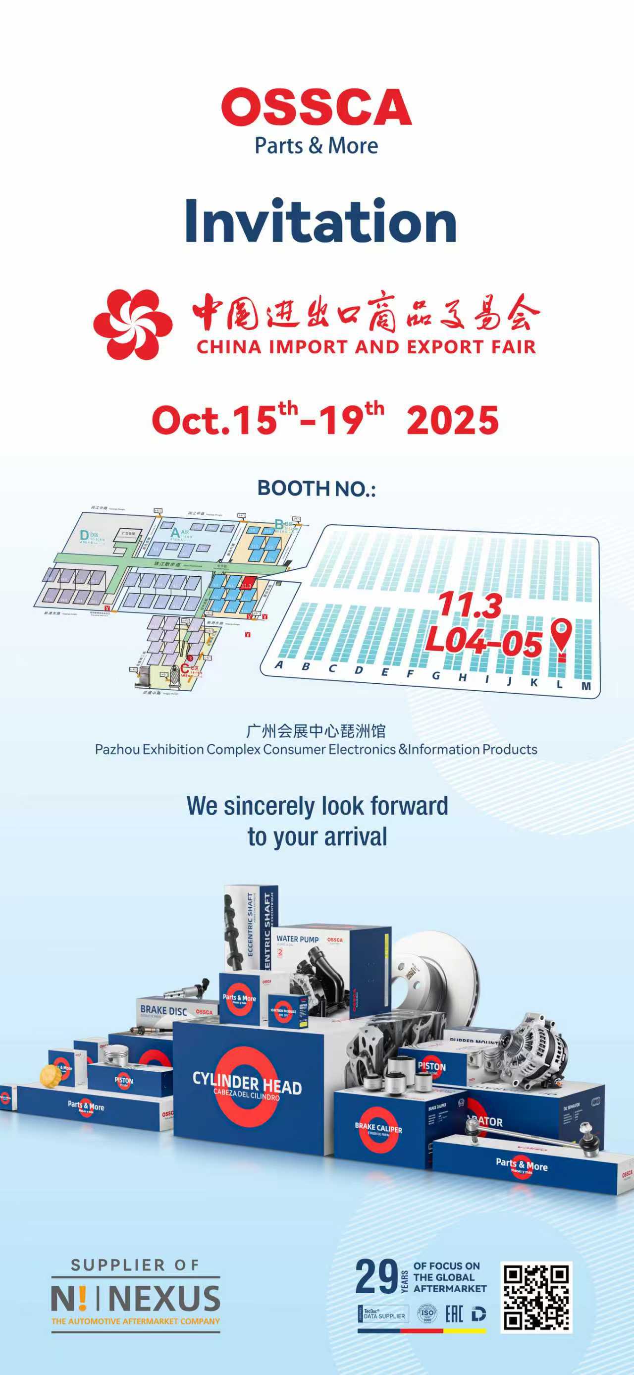 OSSCA cordially invites you to visit our booth—Booth L04-05, Hall 11.3—to explore new opportunities and potential collaboration in the automotive parts sector.
